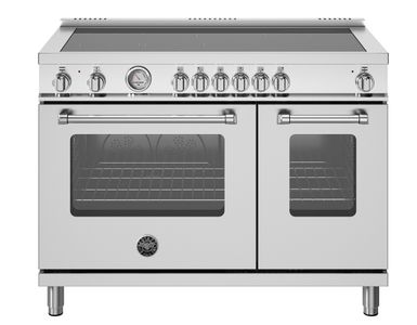 The 4.7 cu.ft electric main oven with dual horizontal convection allows even baking and roasting on 7 shelf levels. A 2.4 cu.ft auxiliary electric oven with broiler helps prepare multiple dishes at the same time. Bertazzoni ovens are equipped with an extra-large high-power broiler for broiling and grilling.