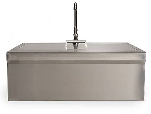 They offer a sleek and modern look to any outdoor kitchen while providing ample space for washing large pots and pans, and for food preparation.