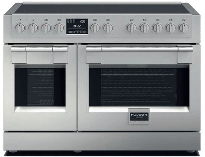 This elegantly designed 48” induction range has a cooking surface that features 7 powerful premium European inductors under a continuous piece of ceramic glass. It includes a dedicated bridge element, which allows one to combine both induction zones into one large zone for use with specialty cookware or an induction-capable griddle. The precise control of the induction is ensured by professional control knobs. Two self-cleaning true convection ovens with intuitive multiple baking and broiling functions and the convenience of telescoping racks encourage you to cook the way you want. Like all Sofia Pro ranges, you can create your personalized nameplate for the oven door.Read More