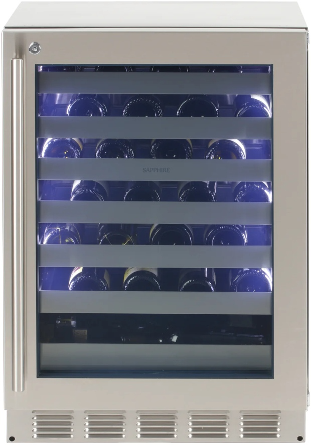 Complete your home refrigeration system with the Sapphire Appliances 24" Stainless Steel Wine Cooler featuring signature Sapphire blue interior, full wrapped stainless-steel exterior and articulating, concealed self-closing hinges with built-in door stop.Read More