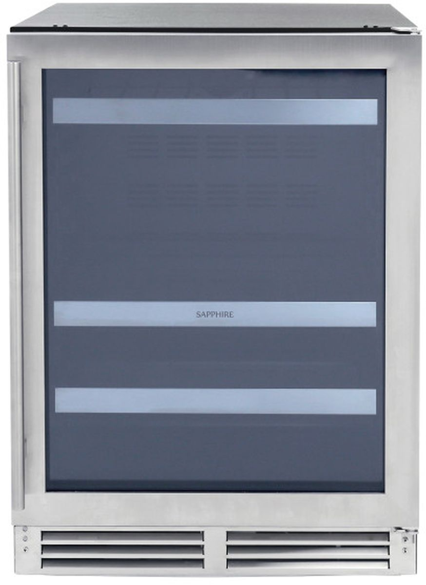 Adaptable Install ready for use both built-in or freestanding indoors or outdoors. The Sapphire Series 3 Refrigerator with glass door is equipped with a stainless steel panel and stainless steel handle that is easily removed to replace with a custom 3/4" door frame and custom handle. Temperature range of 34°F to 65°F is ideal for your food, condiments, beverages and other refrigerated goods. Fan-assisted cooling system allows for even temperatures, quicker cooldown times and added efficiency. Front Mounted Zero Clearance Pin Hinge with Door Close Assist allows flush built-in installation. Adaptable shelving system includes 3 stainless front, full-extension tempered glass shelves. Fixed Stainless Steel Toe-Kick Grille Cover allows for flush installation. Making this undercounter refrigerator a beautiful addition to your home inside or out. Experience the perfect fit for your home cold storage needs with the Sapphire Series 3 Refrigerator with glass door. Covered by the Sapphire Two-Year Parts & On-Site Labor +Five-Year Compressor Parts Only Limited Warranty.