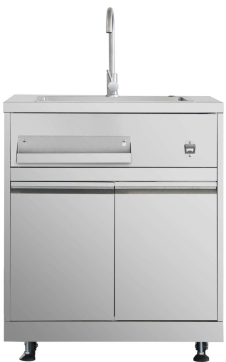 Stainless steel sink with a drain hose and water pipe so you can prepare your ingredients outdoors without going back inside