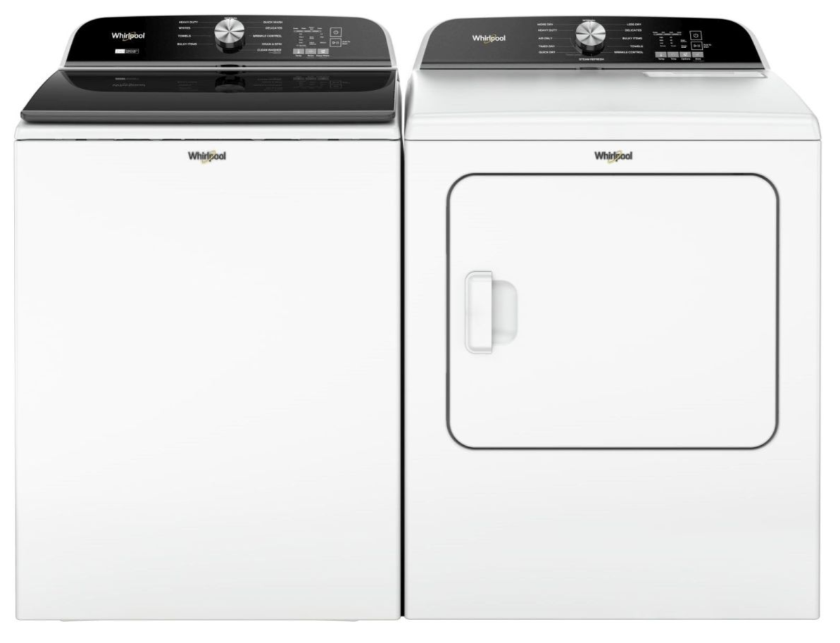 Whirlpool® White Laundry Pair with a 6.1 cu. ft. capacity top load washer and a 7.0 cu. ft. capacity front load electric dryer.Read More